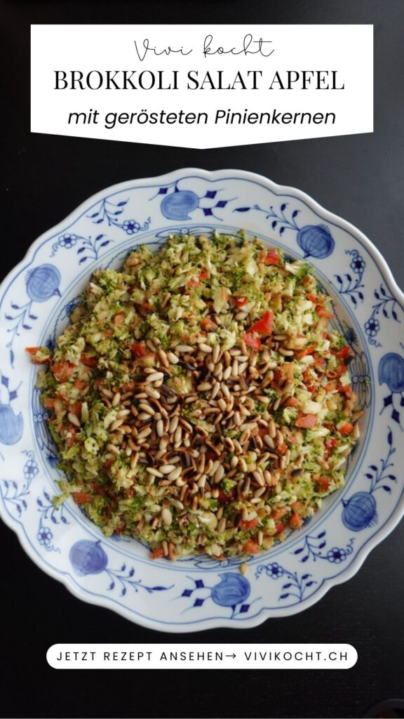 Brokkoli Salat Apfel Salat mit Pinienkernen