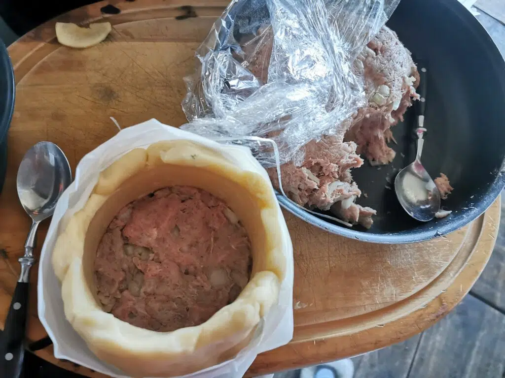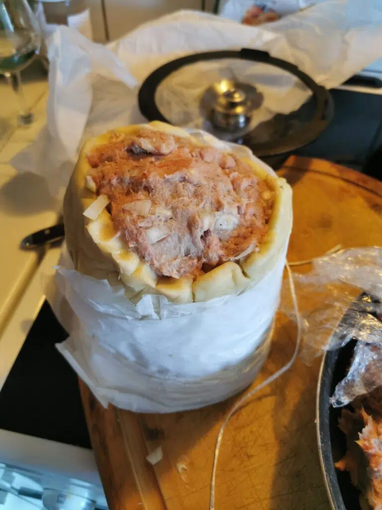 Cheshire Pork Pie ein wahrer Hochgenuss. Mein Liebster und ich waren bei Philipp Schwander auf seinem Schloss nahe bei Konstanz zu Silvester 2019 eingeladen. Die Gäste kreierten an diesem besonderen Abend selber das Menü. Ich hatte eigentlich an eine Lasagne mit selbst gemachter Pasta gedacht. Für ca. 20 Personen. Die Pasta passte aber nicht ins Menü.