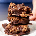 • Optional Schokolade schmelzen und die Riegel beträufeln oder die Unterseite eintauchen, dann nochmals kurz kühlen.