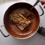 6. Schokolade schmelzen und die Riegel toppen oder dippen, dann wieder kurz kühlen.