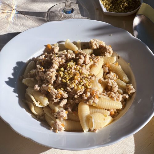 Pasta mit Kaninchenragout & Pistazien vereint zartes Kaninchenfleisch, das in einer aromatischen Sauce geschmort wird, mit gerösteten Pistazien. Diese Alternative zu Bolognese Sauce bringt die herzhaften Aromen der italienischen Küche Neapels direkt auf den Teller und ist ideal für ein besonderes, mediterran inspiriertes Essen.