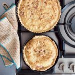 - Bei 220 °C auf 2. unterster Schiene ca. 40 Min. backen, bis die Mitte gestockt und die Oberfläche goldgelb ist.